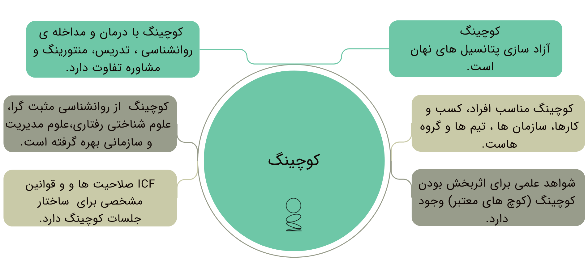 •    کوچینگ معادل مشاوره، آموزش و راهنمایی است.